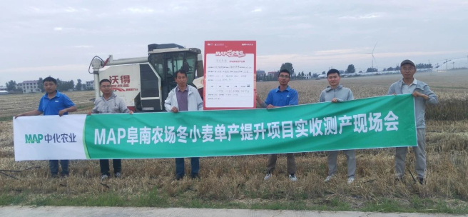 在安徽省阜阳市阜南县,由中化农业MAP服务的地块测产数据也达到743.6公斤/亩,这主要得益于包含“精量条播与滴灌带同步铺设”“水肥一体化精准增效”“MAP智能小流量滴灌系统”和“全程精准植保防控技术”在内的单产提升集成技术体系。阜南地区小麦高产的成功示范,为安徽全省小麦高产提供了可复制的技术解决方案。